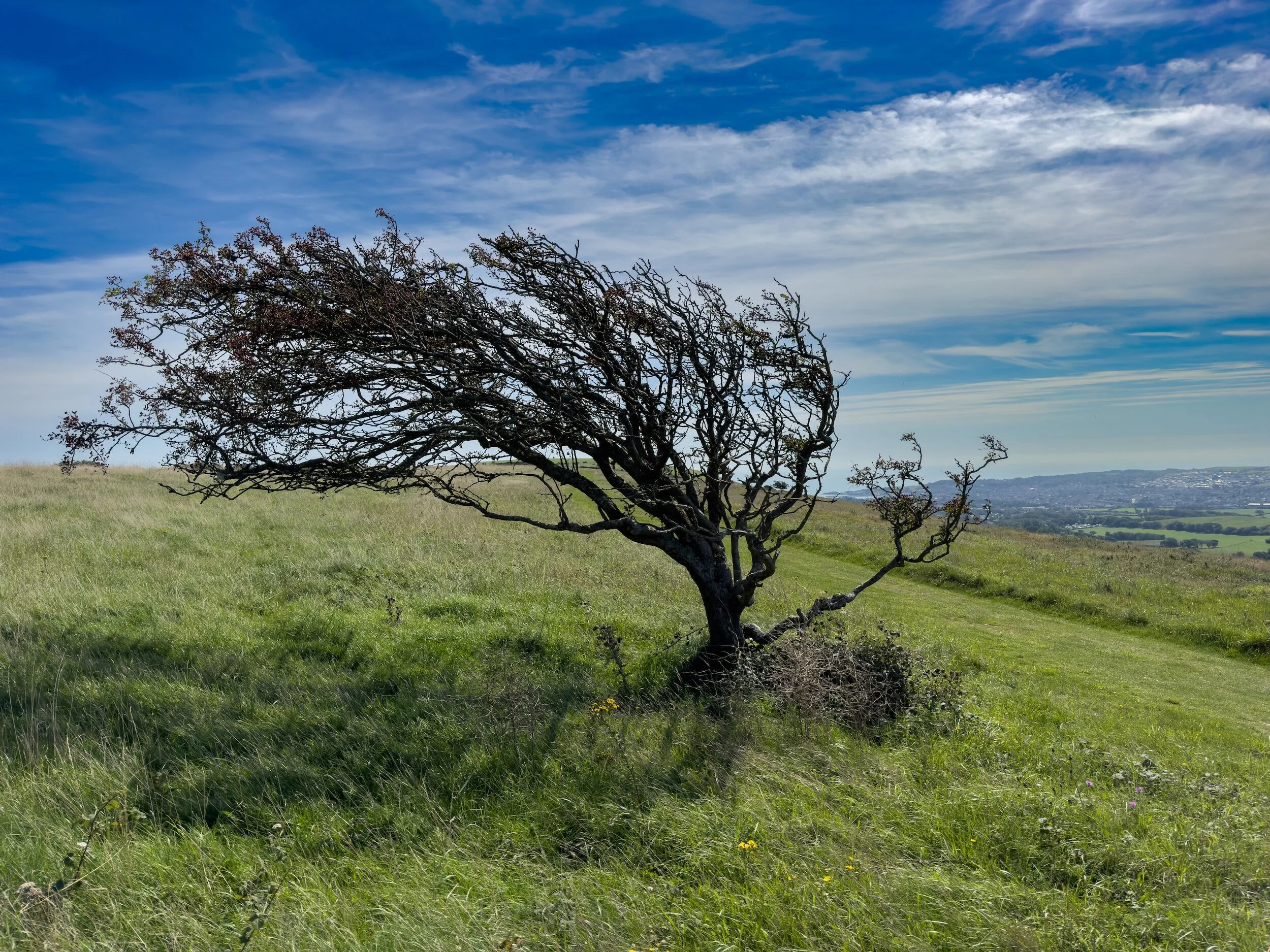 In most cases, the trees won’t look entirely windswept, and it will take a bit more deciphering to figure out how the plant is affected by the wind. Plants will usually grow to point their branches and twigs away from the wind, as they are more likely to snap in high winds if they are pointing towards it. Telling direction with the wind can be difficult, and takes a lot of practice, but it’s a worthwhile tool to keep in your toolkit.