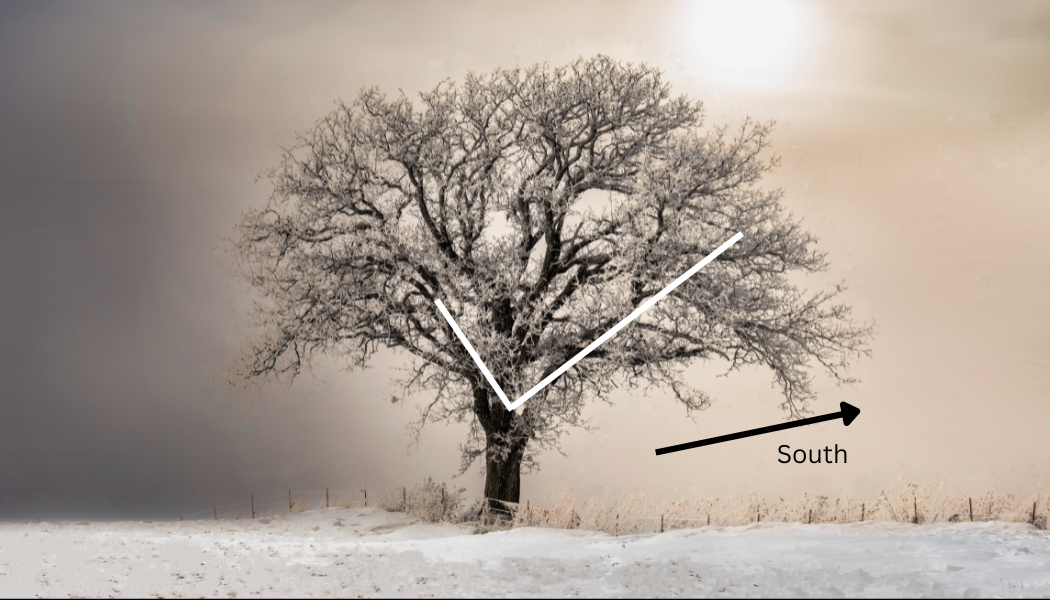 It is important to remember that this only works well in isolation. In a forest, other trees may be blocking the sunlight of the tree you’re trying to use to tell direction. If the tree’s south side is blocked, it may stretch to the east or west instead. For this reason, you have to carefully think through any tree or plant that you’re using for this purpose. I also recommend doing a full 360 degree walk around the tree so as to see it from all angles and confirm which side actually has the most foliage.